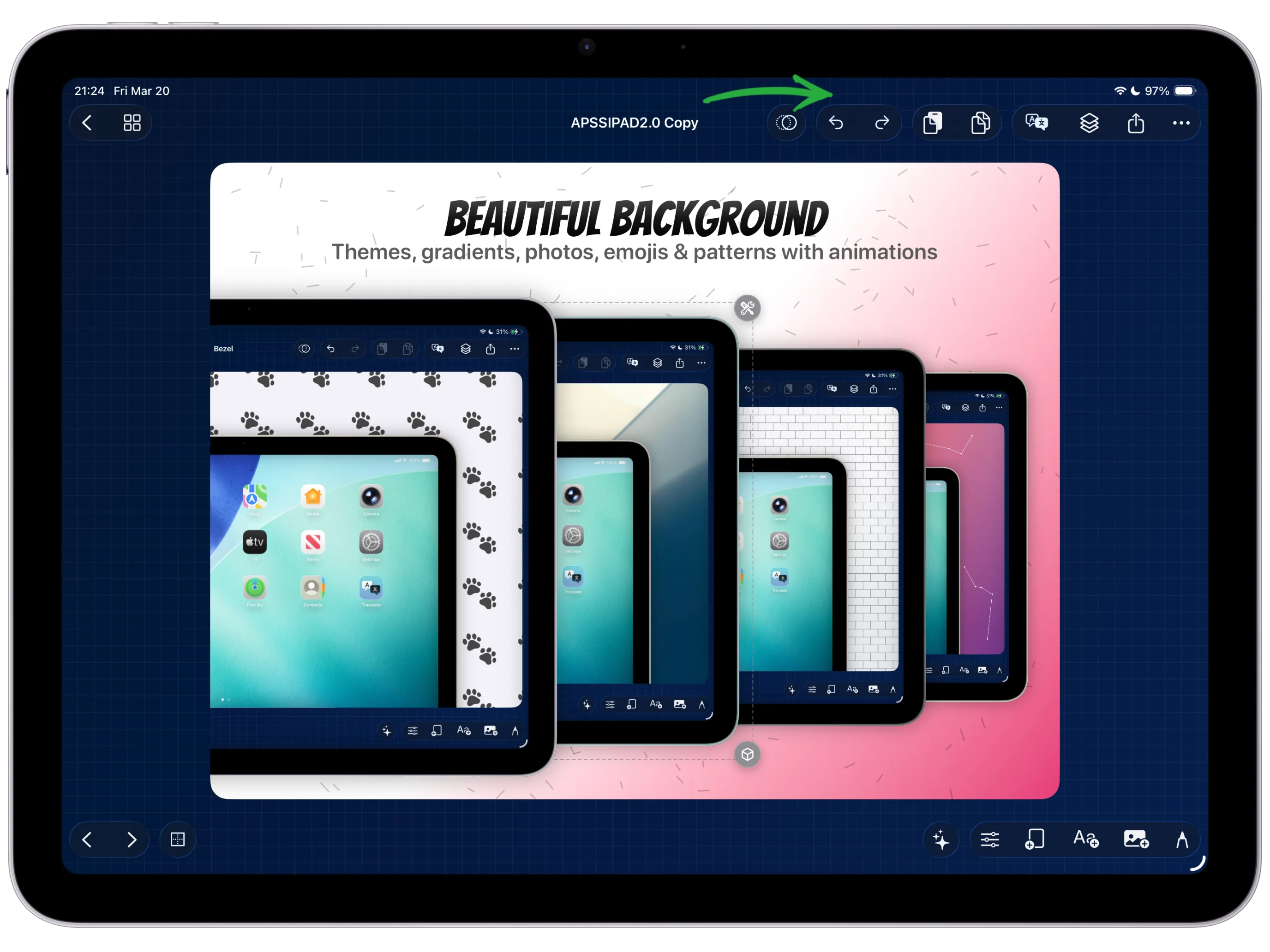 Undo and redo are built into the core editing experience, so you can keep experimenting with copy, layouts, motion, and backgrounds without worrying that one wrong move will cost you the whole composition.